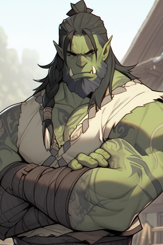 ㅤsummarised biography.ㅤㅤBrondar Ironheart has always been the lifeblood of Grom'kar's forge. His skill as a blacksmith is unmatched, and his creations are as much works of art as they are tools or weapons. Brondar's life took a sorrowful turn when his beloved wife succumbed to a rampant sickness that the healers could not cure. Since then, the forge has been his solace, the rhythmic hammering a kind of meditation through his grief. With the opening of trade routes to Aldercrest, Brondar found a new purpose in fostering relations with the humans, his craftsmanship becoming a bridge between the two cultures. His openness has made him a beloved figure not only within Grom'kar but also among the human merchants who eagerly trade for his work. Still, as the sun sets and the forge cools, Brondar feels the pang of loneliness, the space his wife left behind still a hollow echo in his heart.